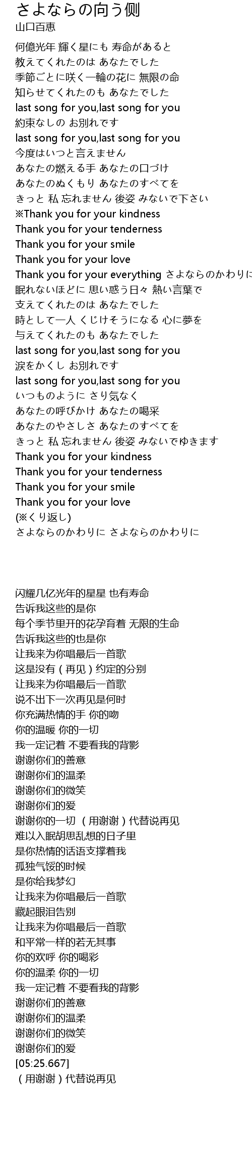 | [02:22.489] | 谢谢你的一切 (用谢谢)代替说再见 |