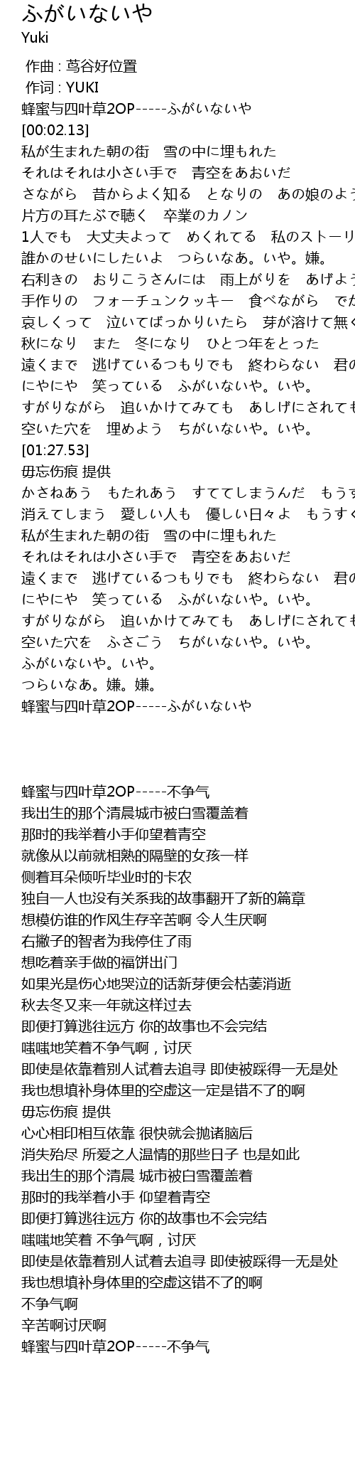 | [03:43.50] | 蜂蜜与四叶草2OP-----ふがいないや |