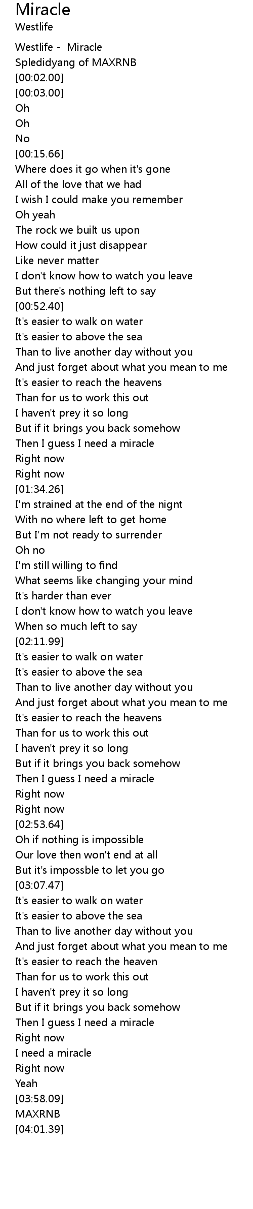 | [00:00.00] | Westlife - Miracle |