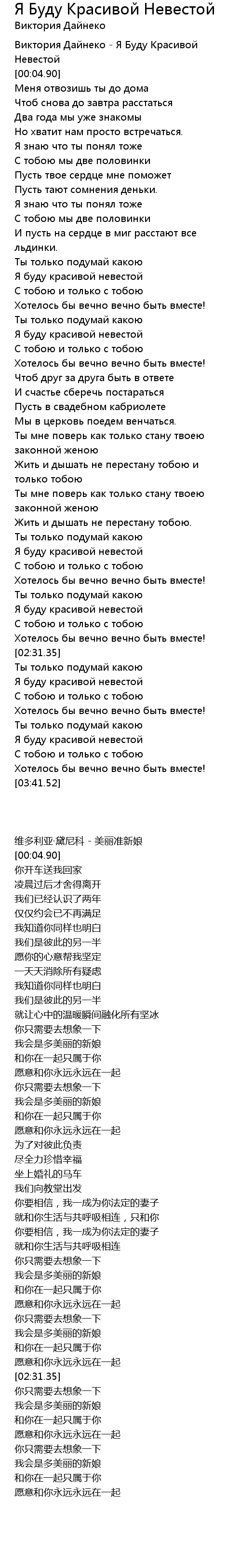 | [00:00.00] | Виктория Дайнеко - Я Буду Красивой Невестой |