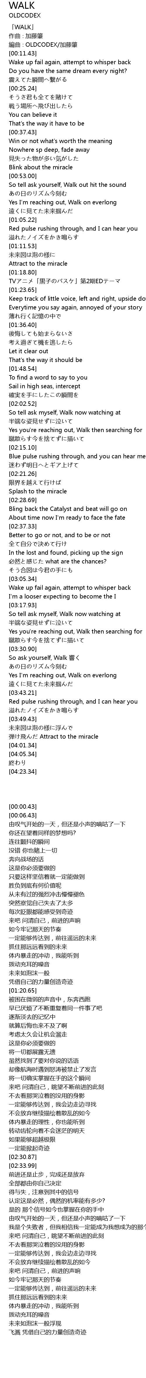 | [00:00.43] | 「WALK」 |