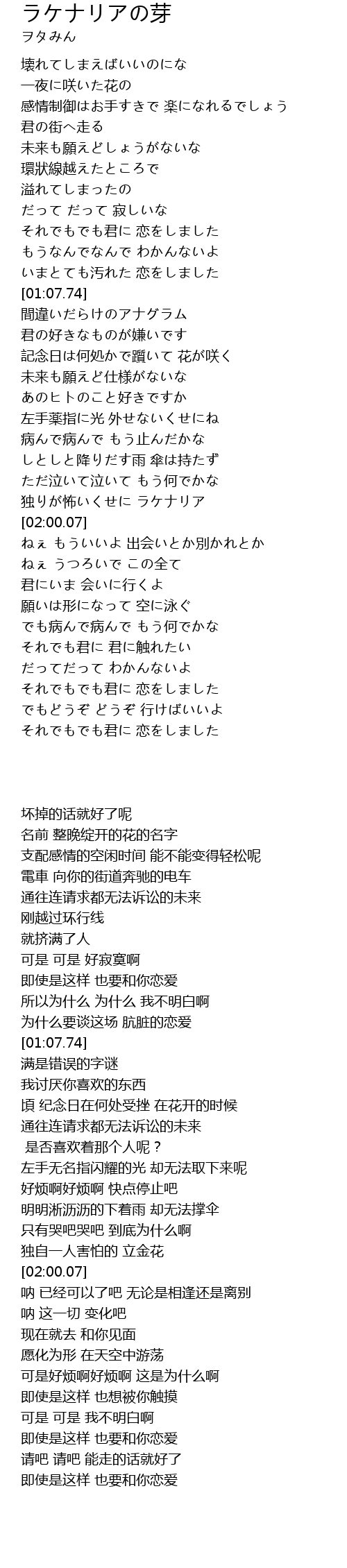 | [01:56.39] | 独りが怖いくせに ラケナリア |