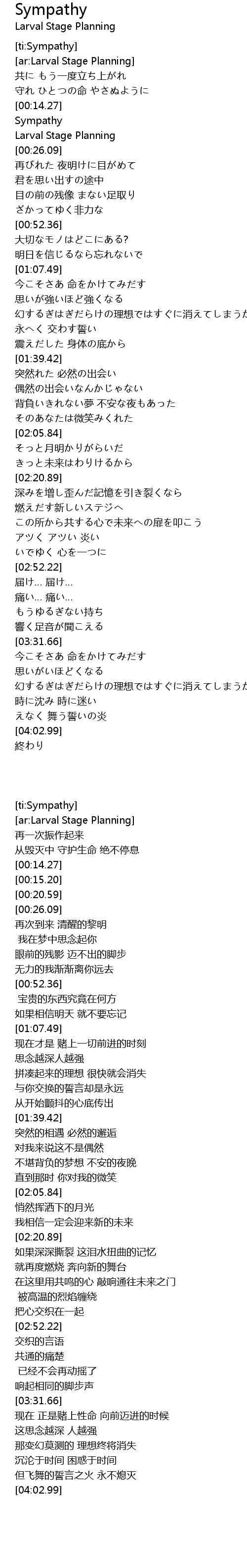 | [00:15.20] | Sympathy |
