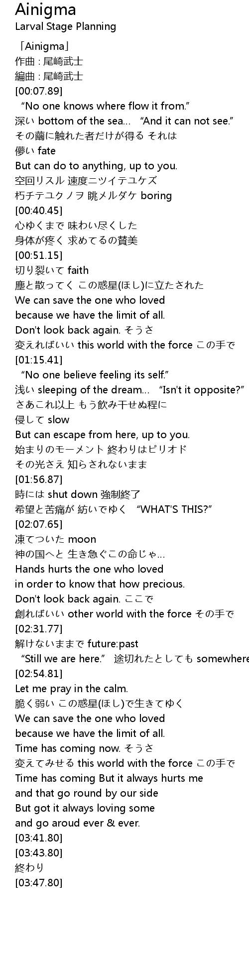 | [02:44.94] | “Still we are here.” 途切れたとしても somewhere… |