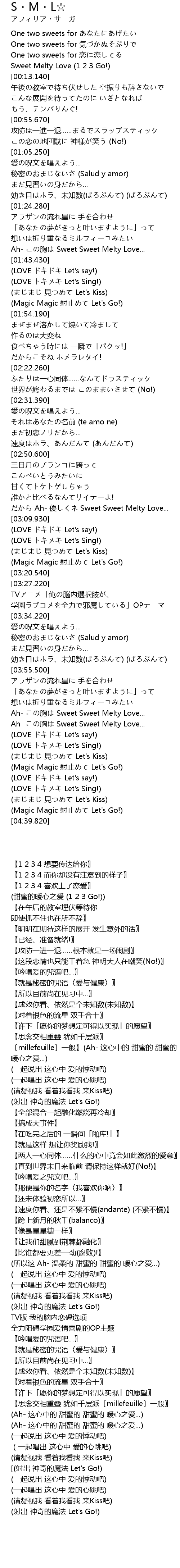 | [00:10.650] | Sweet Melty Love 1 2 3 Go! |