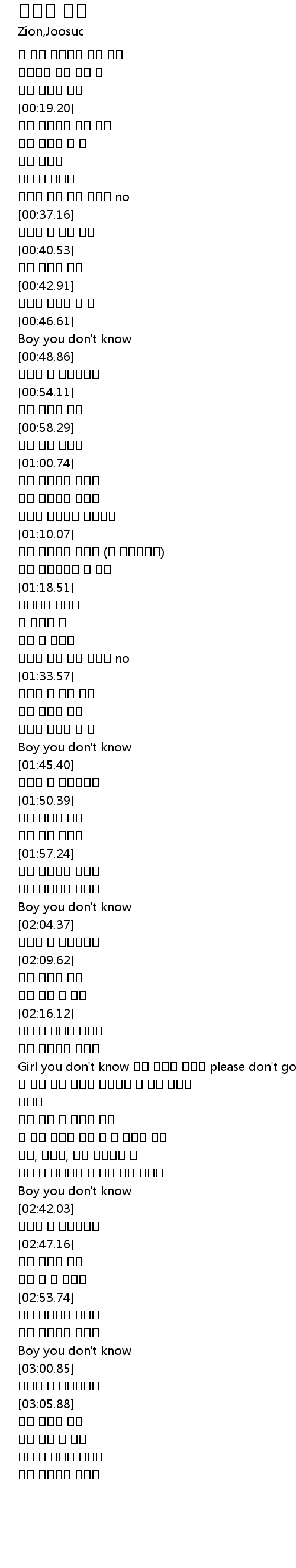 | [02:23.11] | Girl you don't know 내가 해명할 기횔줘 please don't go |