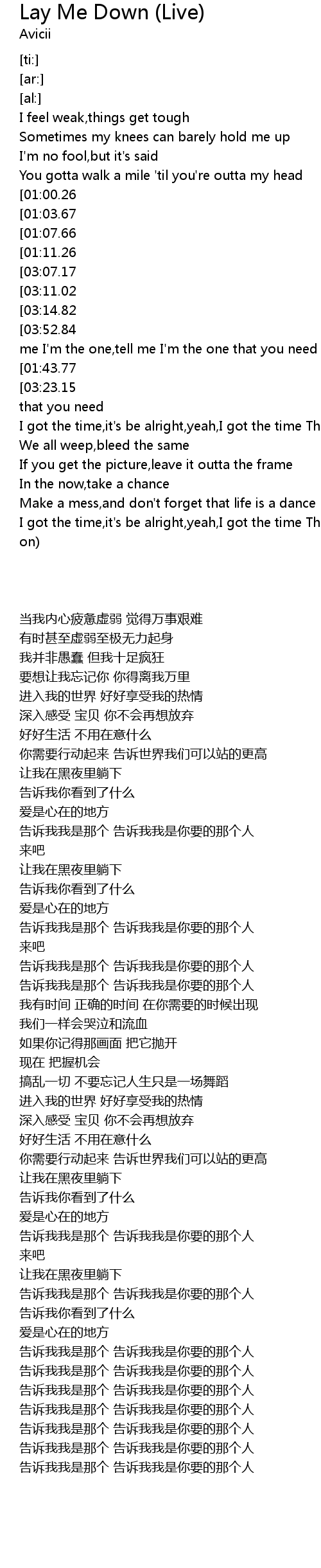 | [03:56.53][03:52.84][03:48.79][03:45.13][03:33.73][03:18.36][01:41.29][01:26.08] |