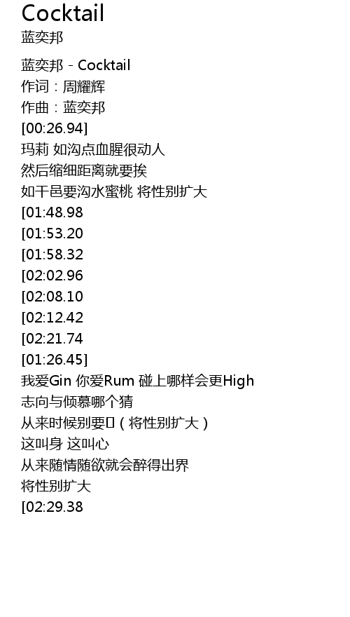 | [00:01.94] | 蓝奕邦 - Cocktail |