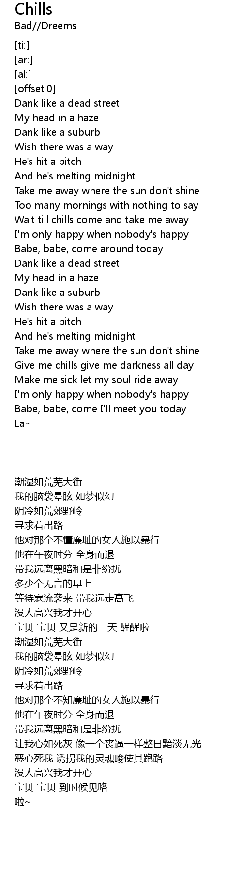Give me chills give me darkness all day |
