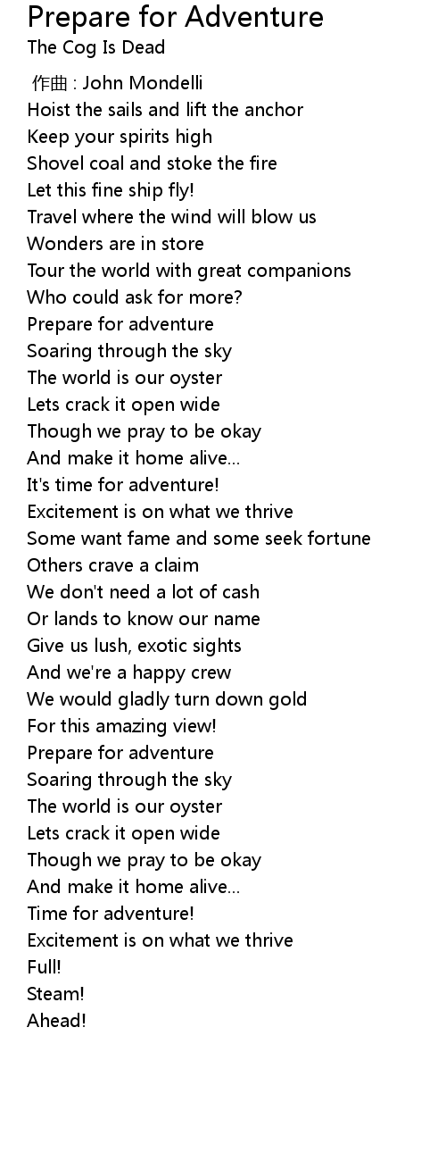 | [00:44.53] | Hoist the sails and lift the anchor |