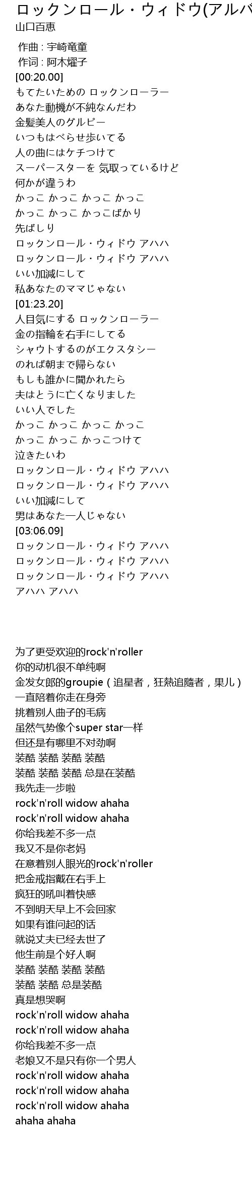 | [01:11.75] | ロックンロール・ウィドウ アハハ |
