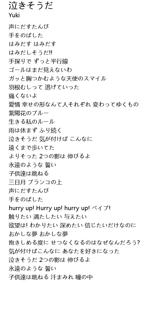 | 泣きそうだ 2つの影は 伸びるよ | |