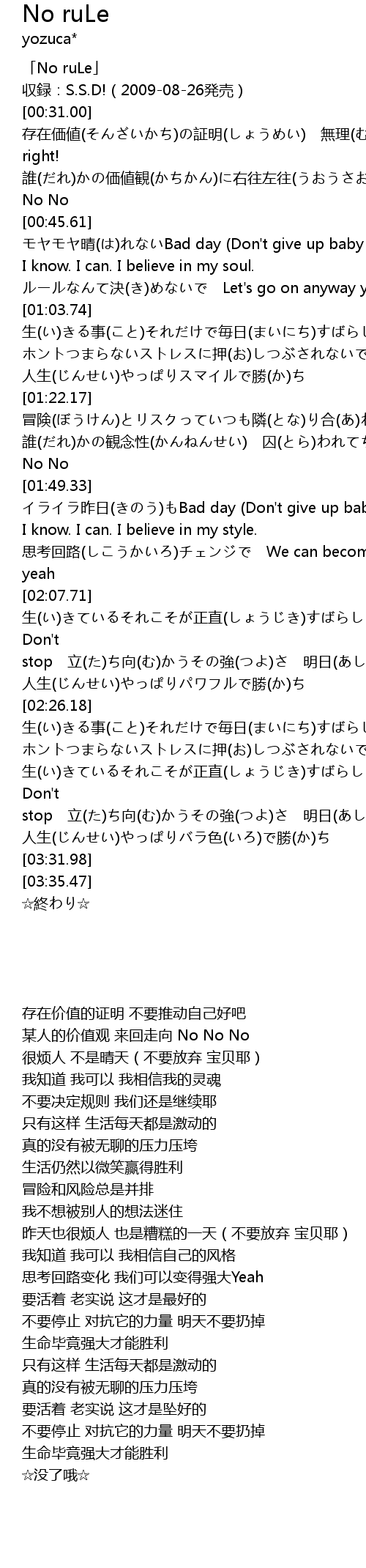 | [00:00.00] | 「No ruLe」 |