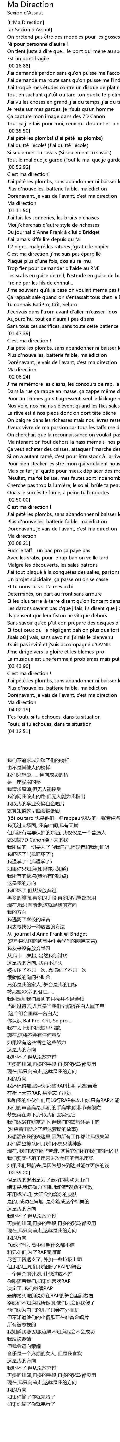 | [01:23.32] | C'est ma direction, j'me suis pas éparpillé |