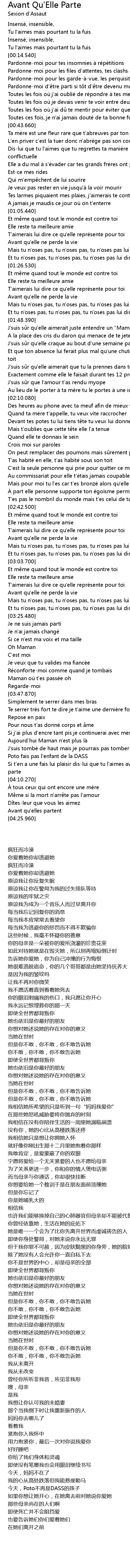 | [04:06.400] | Si t'en a une fais lui plaisir dis-lui que tu l'aimes avant qu'elle parte |