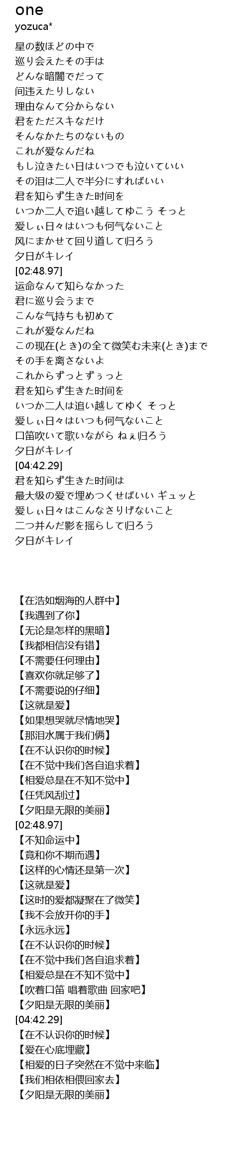 | [02:02.72] | 【在不觉中我们各自追求着】 |