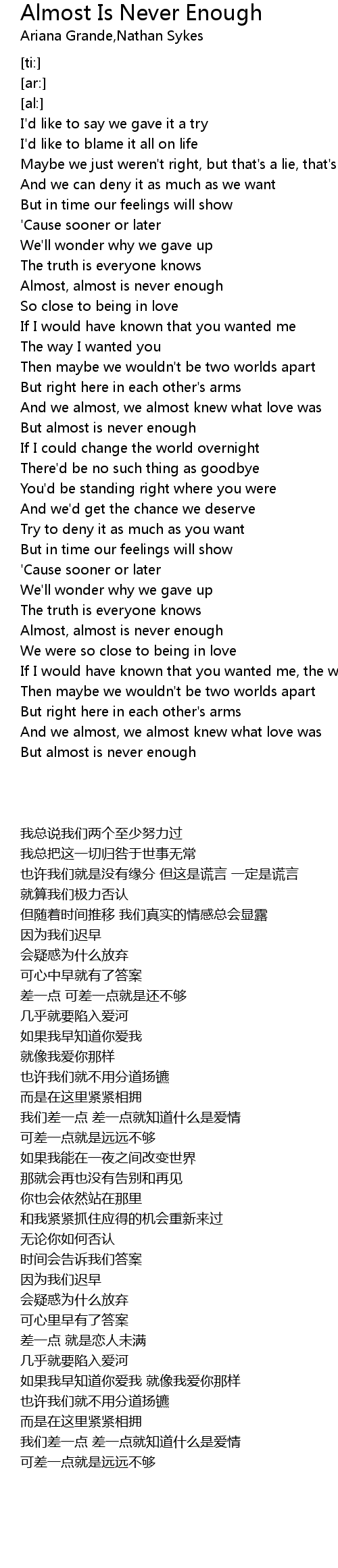 Almost, almost is never enough |