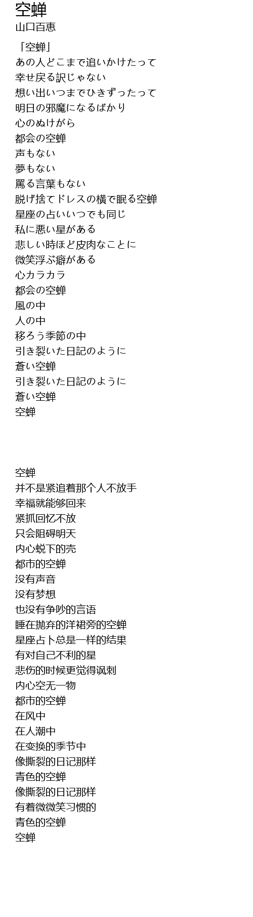 | [01:20.55] | 睡在抛弃的洋裙旁的空蝉 |