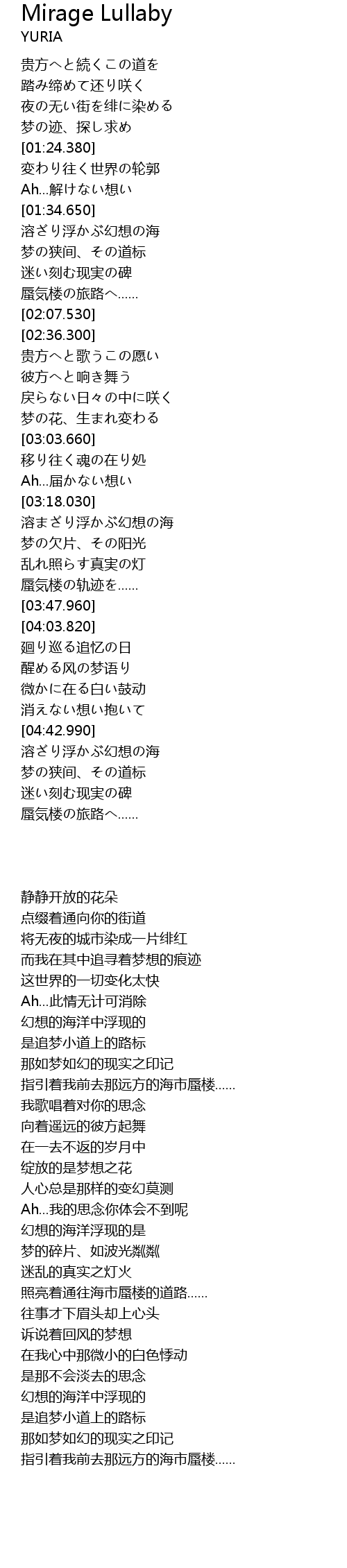 | [03:39.300] | 照亮着通往海市蜃楼的道路...... |