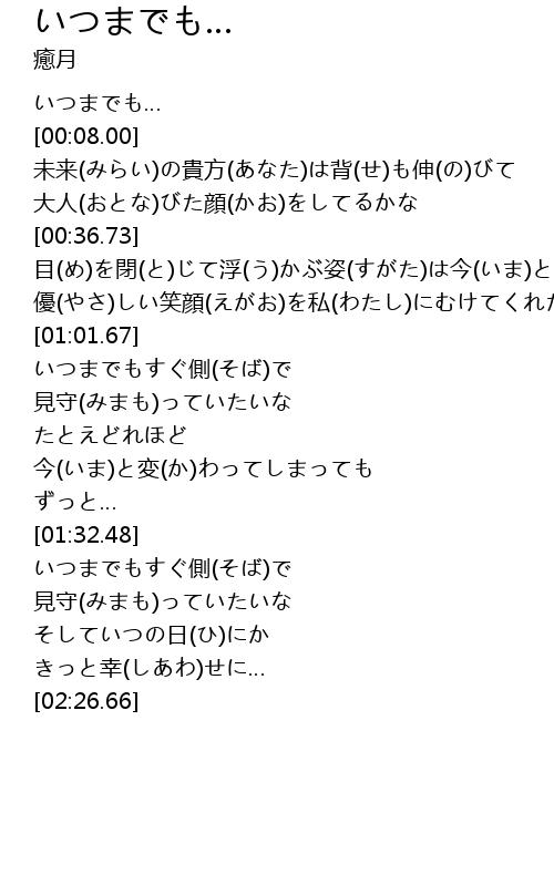 | [01:04.85] | いつまでもすぐ側(そば)で |