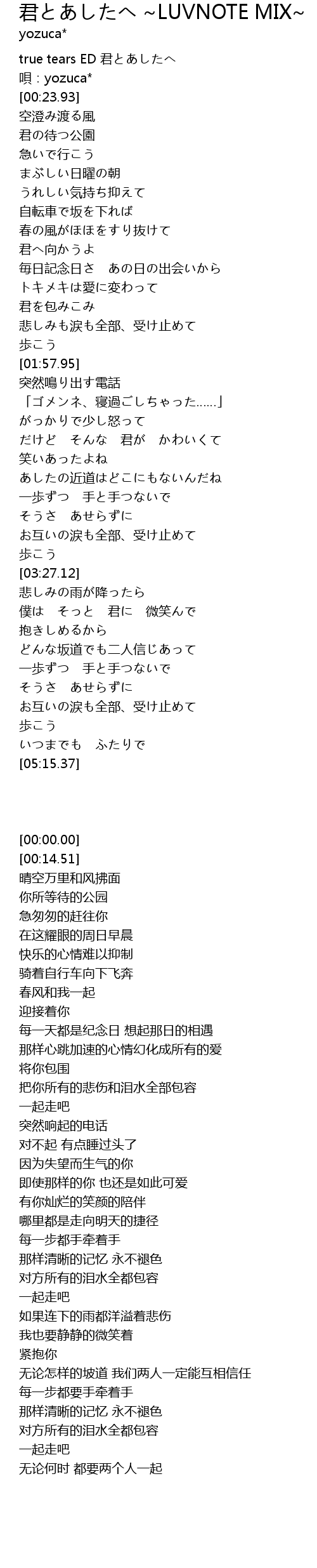 | [00:00.00] | true tears ED 君とあしたへ |