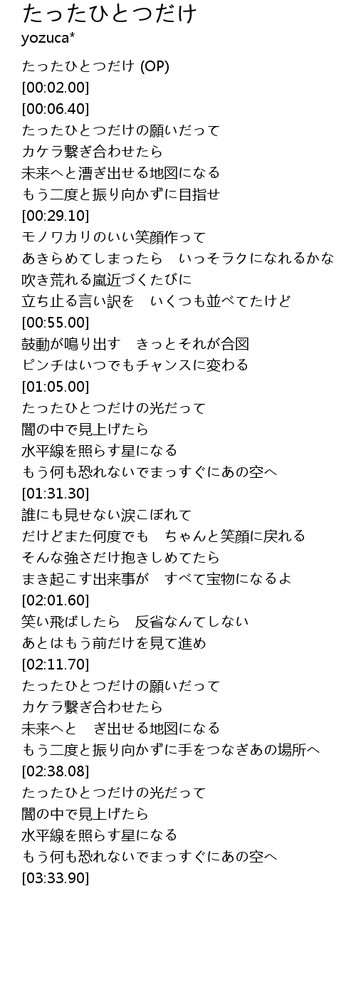 | [03:23.80] | もう何も恐れないでまっすぐにあの空へ |