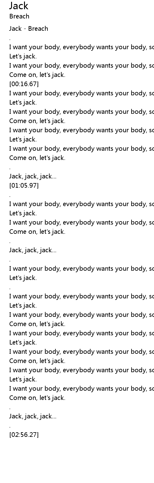 I want your body, everybody wants your body, so let's jack. |