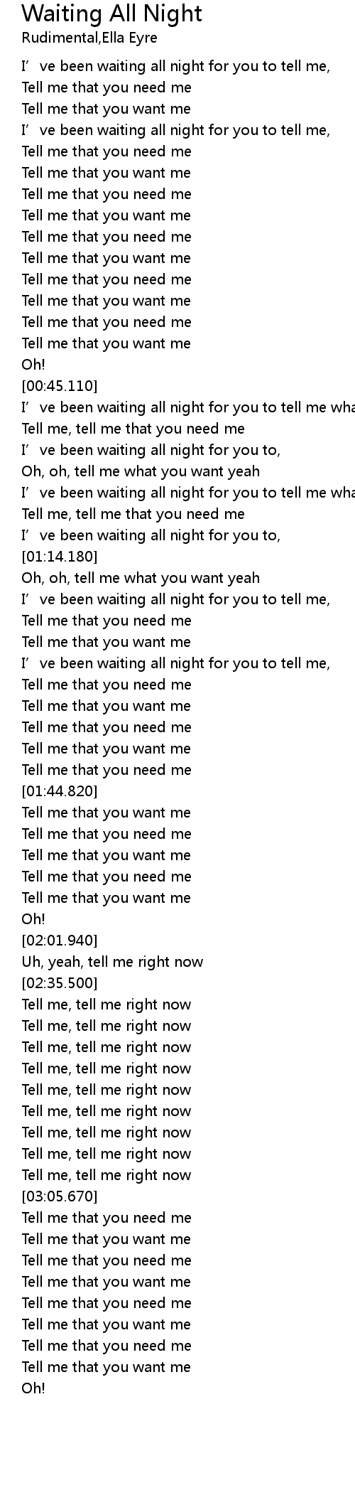 | [00:00.550] | I' ve been waiting all night for you to tell me, |