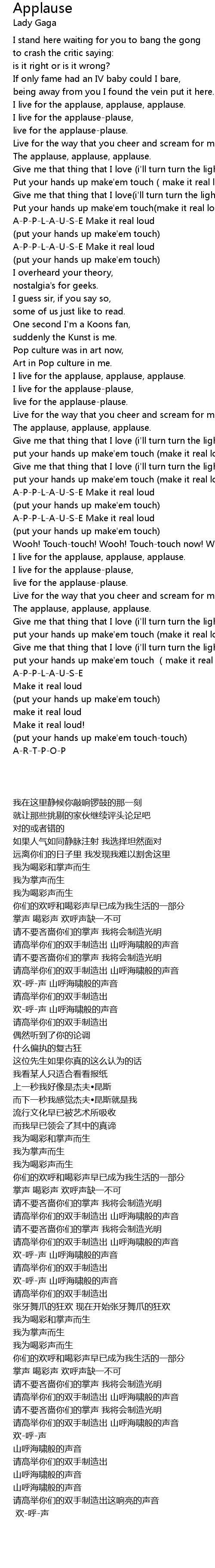 | [01:15.82] | A-P-P-L-A-U-S-E Make it real loud |