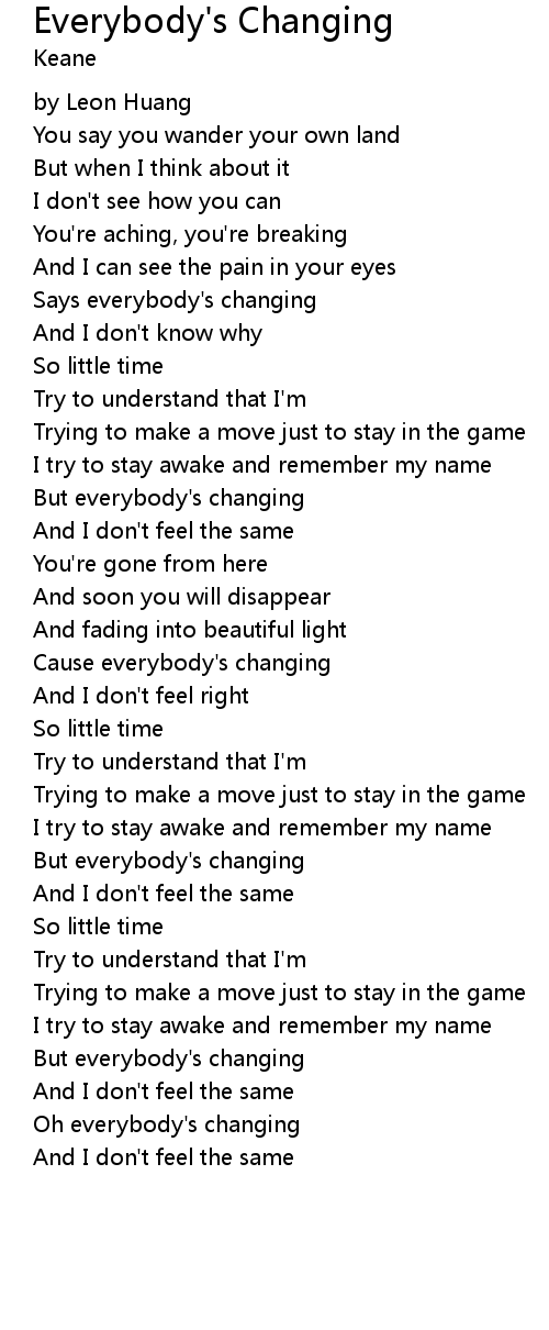 Cause everybody's changing |