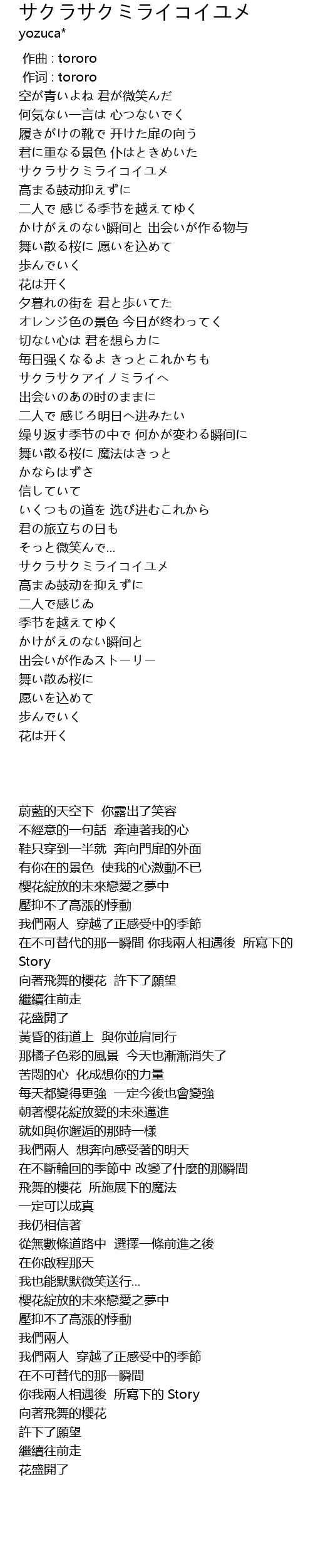 | [02:14.780] | 朝著櫻花綻放愛的未來邁進 |