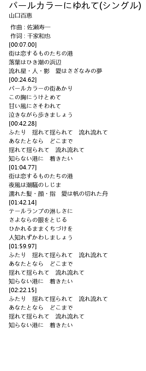 | [02:10.88] | 揺れて揺られて 流れ流れて |