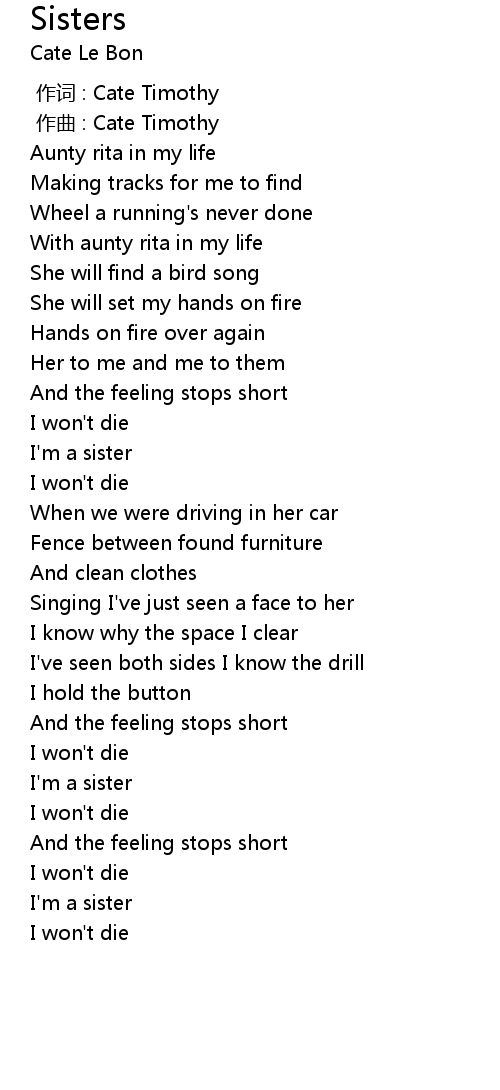 | [02:32.17] | I' m a sister |