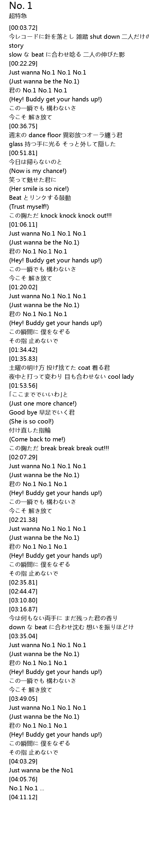 | [03:35.39] | Just wanna No.1 No.1 No.1 |