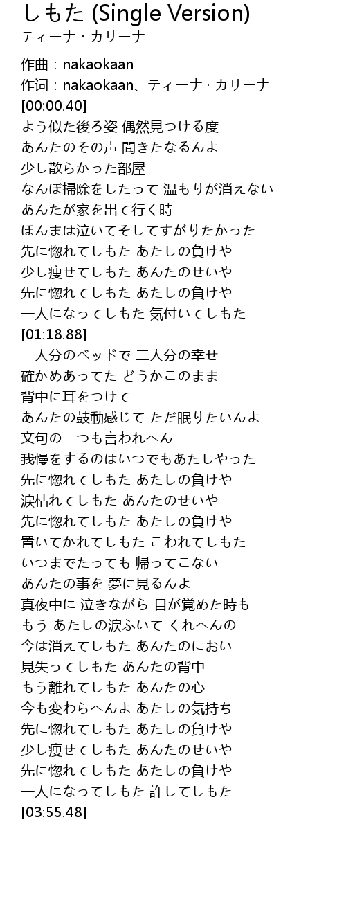 | [03:16.45] | もう離れてしもた あんたの心 |