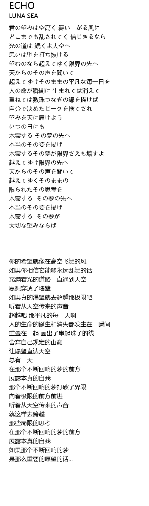 | [02:35.38] | 木霊するその夢が限界さえも壊すよ |