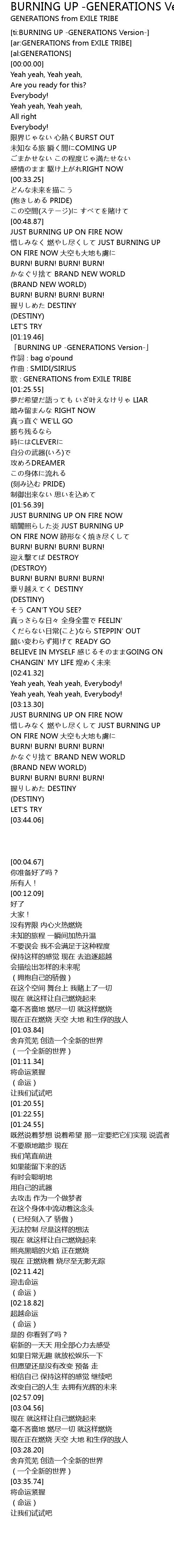 | [01:20.55] | BURNING UP GENERATIONS Version |