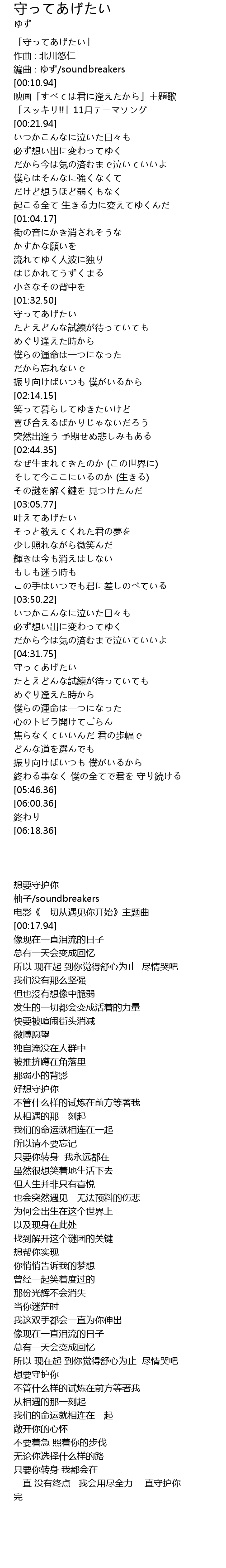 | [00:06.94] | 編曲∶ゆず/soundbreakers |