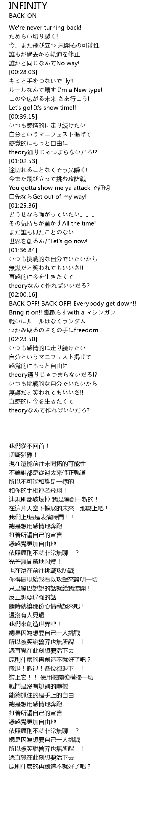 | [01:34.20] | shì jiè chuàng Let' s go now! |