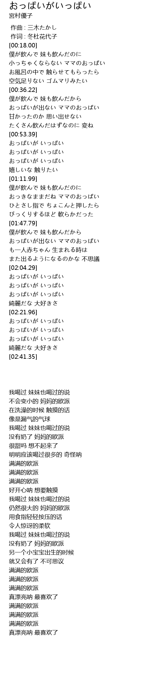 | [02:32.79] | おっぱいが いっぱい |