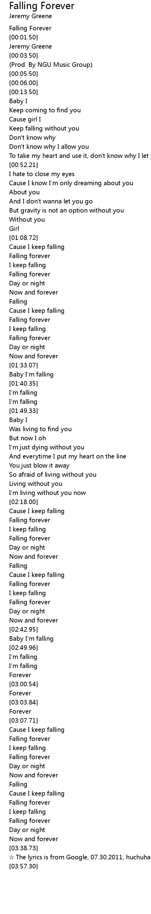 | [03:15.72] | Falling forever |