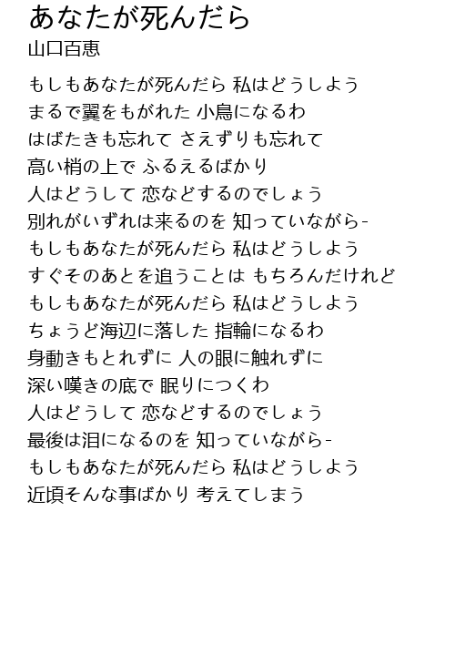 もしもあなたが死んだら 私はどうしよう |