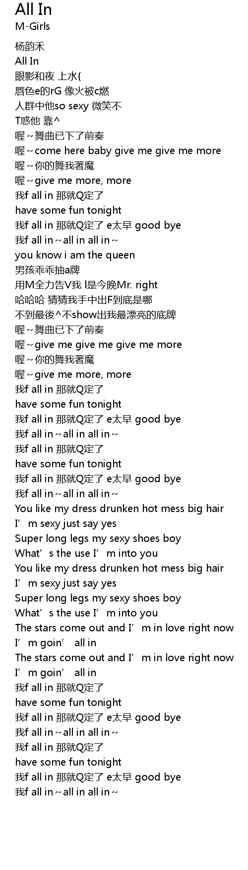 | [01:46.57] | 我f all in 那就Q定了 e太早 good bye |