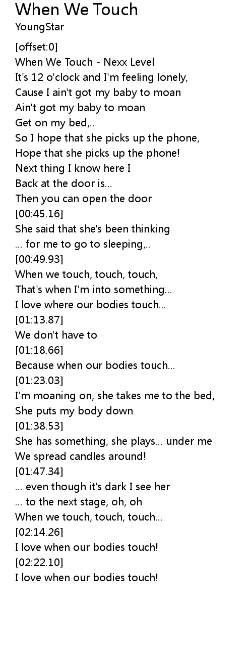 | [00:54.49] | When we touch, touch, touch, |