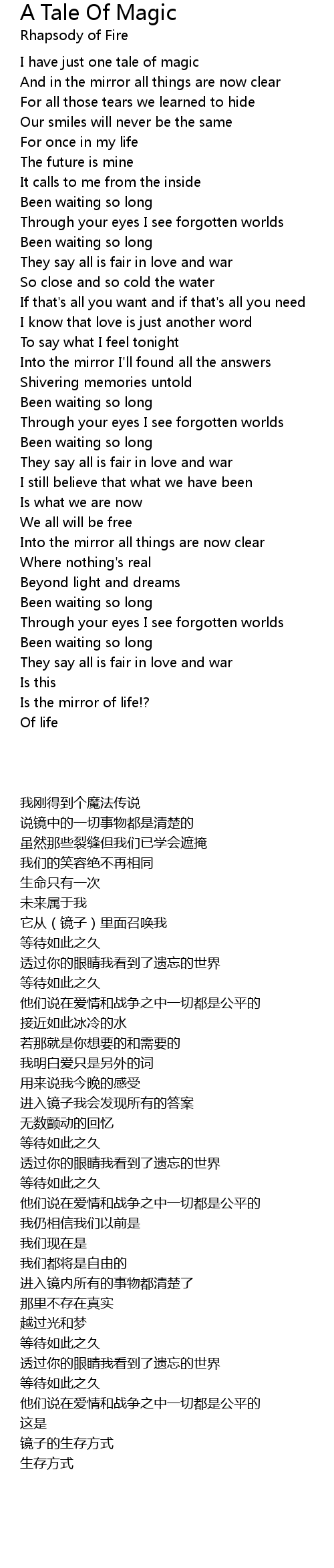 I have just one tale of magic |