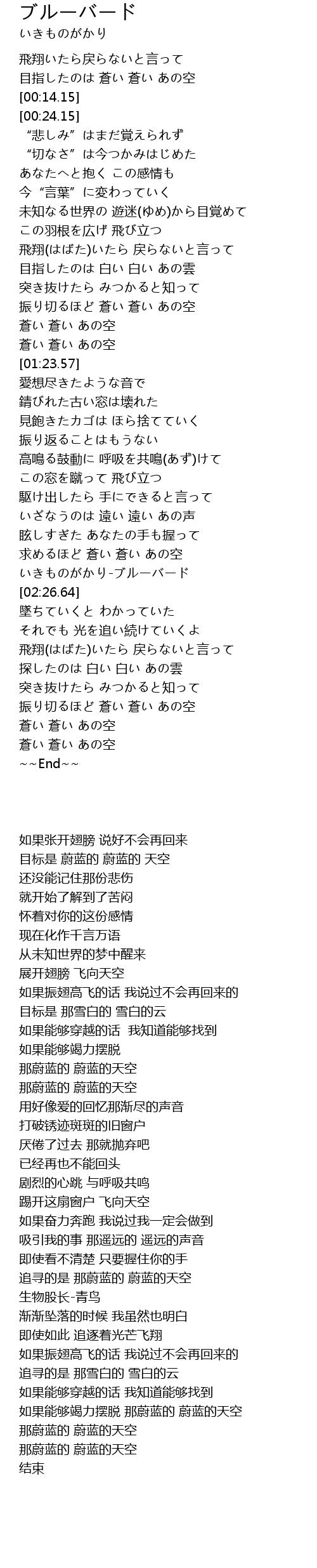 | [00:00.00] | 飛翔いたら戻らないと言って |