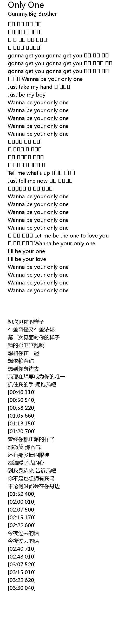 | [02:33.600] | Wanna be your only one |