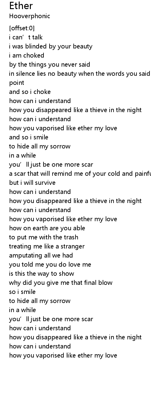 | [01:24.46] | how you disappeared like a thieve in the night |