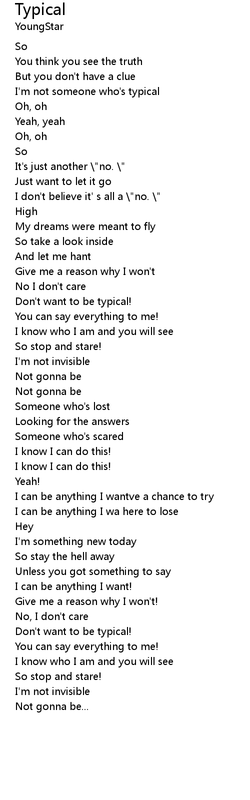 | I'm not someone who's typical | |