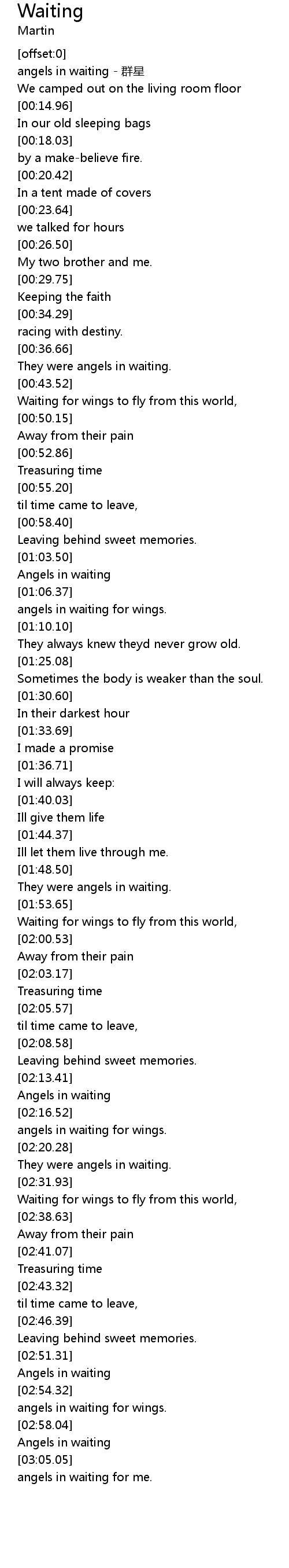 | [02:53.51] | Angels in waiting |